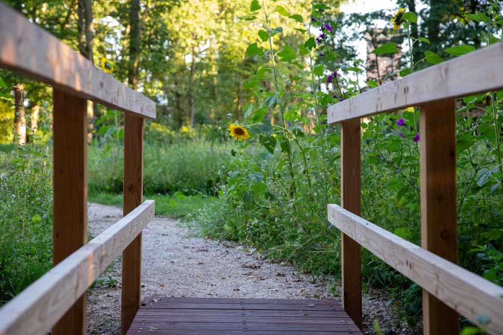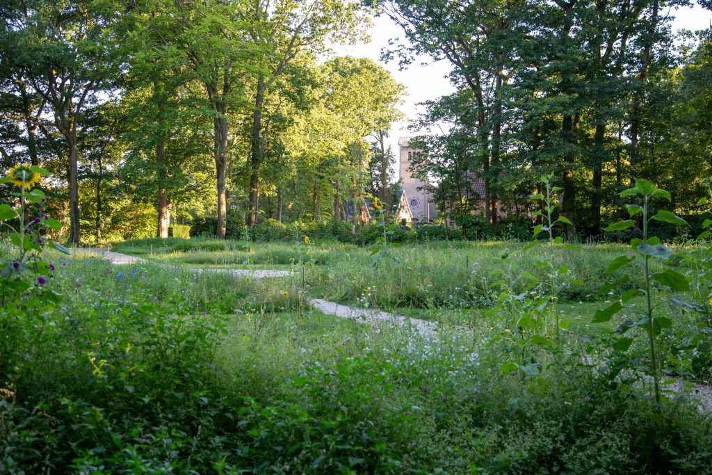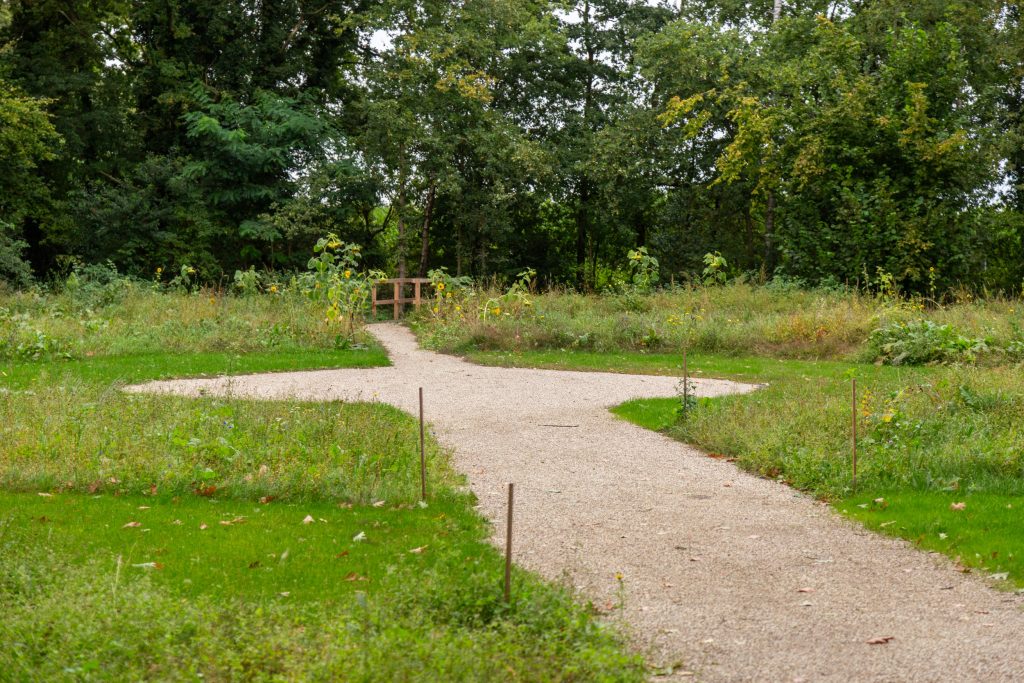 Op verschillende plekken zijn wildbloemen gezaaid, en die laten zich inmiddels goed zien: er is volop kleur en leven te vinden in het groen. Ook op het strooiveld zelf zien we het pad steeds duidelijker naar voren komen...